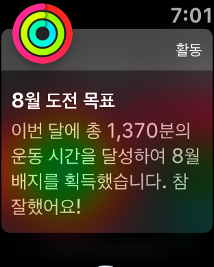 9월을 하루 앞두고 애플워치 8월 활동 배지를 획득하였다.